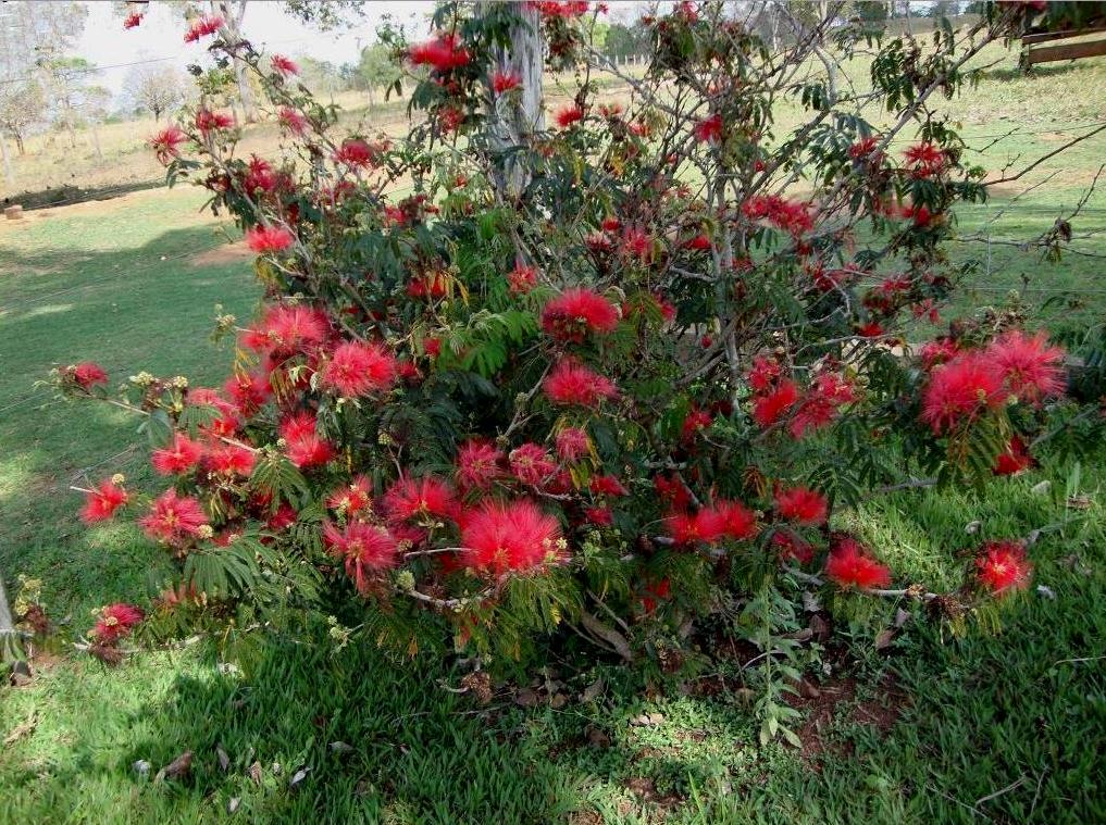 A caliandra é uma planta arbustiva, lenhosa e muito florífera. Apresenta caule ramificado e folhas compostas, bipinadas e opostas, com folíolo pequenos, de cor verde escura. As inflorescências são do tipo umbela, com flores pentâmeras e vermelhas, caracterizadas pelos longos e sedosos estames, que dão ao conjunto da inflorescência um aspecto de pompom. ?? uma espécie muito ornamental, devido principalmente ao charme de suas flores felpudas. Ela é excelente para formar cercas vivas topiadas ou renques informais. Também pode ser plantada isolada, criando um certo destaque ao jardim quando está florida.